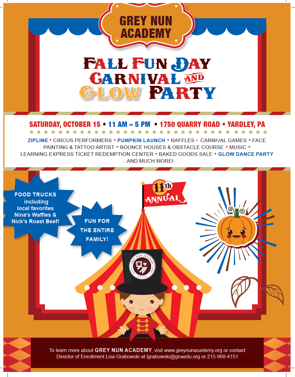 Promotional Flyer • February 5 2026 Grey Nun Academy Fall Fun Day Carnival & Glow Party Event marketing, promotion, and design oversight